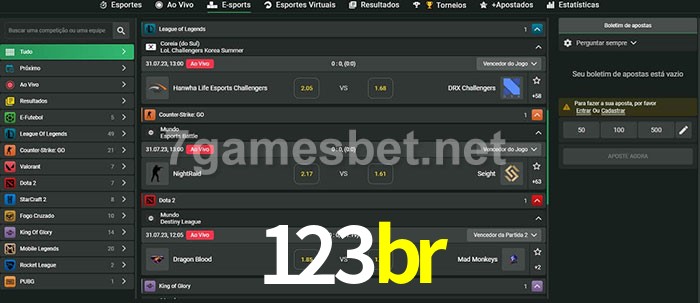 O 123br oferece uma grande seleção de opções de apostas em e-sports com probabilidades competitivas